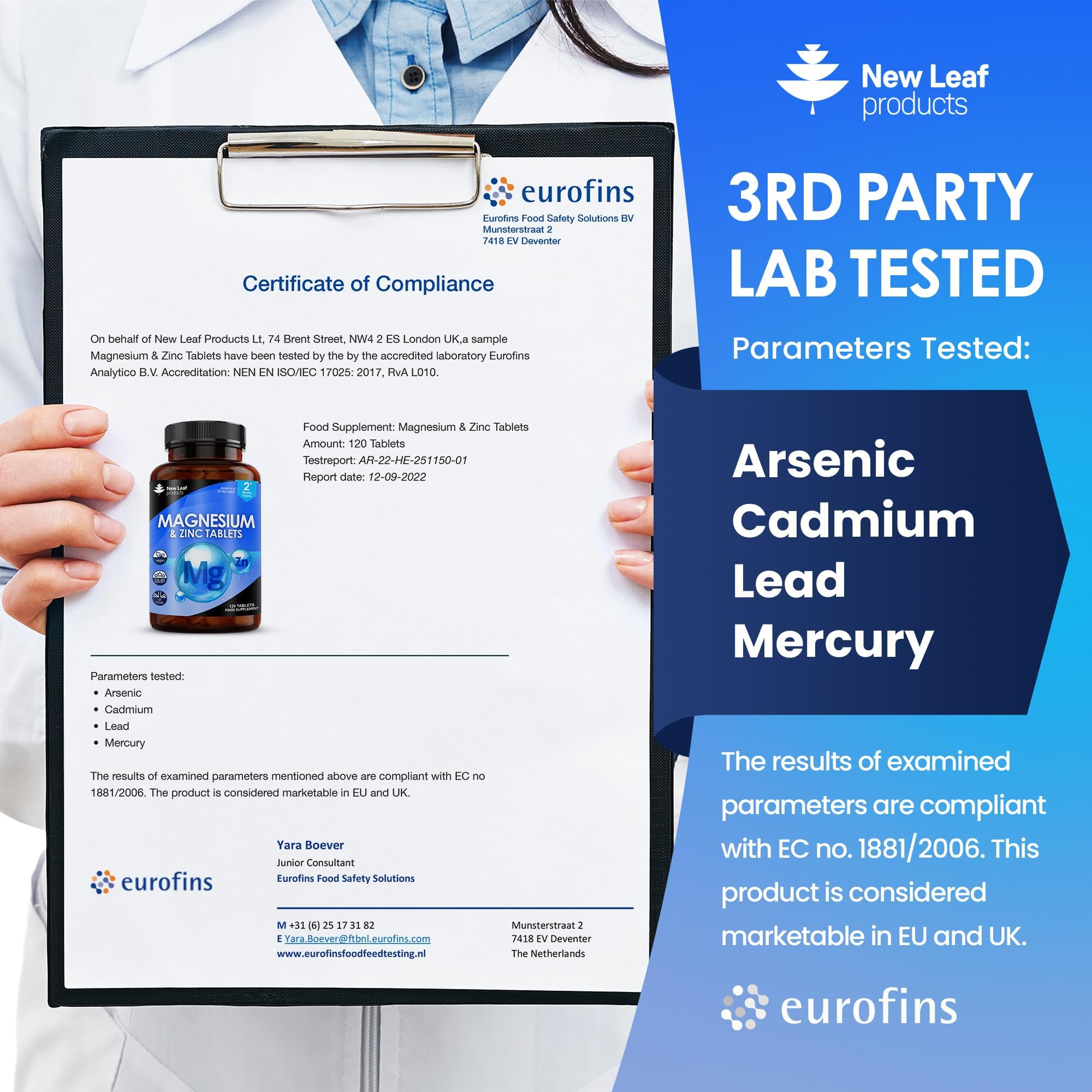 - THIRD PARTY LAB TESTED – Each ingredient is quality tested before our manufacturing process begins, once completed our Magnesium tablets undergoes further rigorous quality testing. Our Magnesium supplement have been 3rd party tested for heavy metals and unwanted compounds by UK & Europe’s largest testing facilities (Eurofins) The lab is UKAS accredited according to ISO/IEC 17025:2017