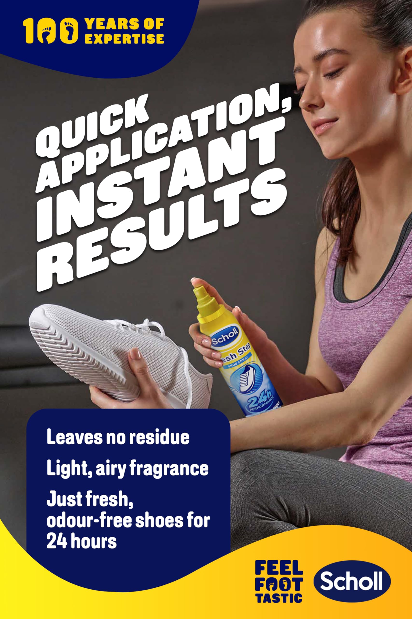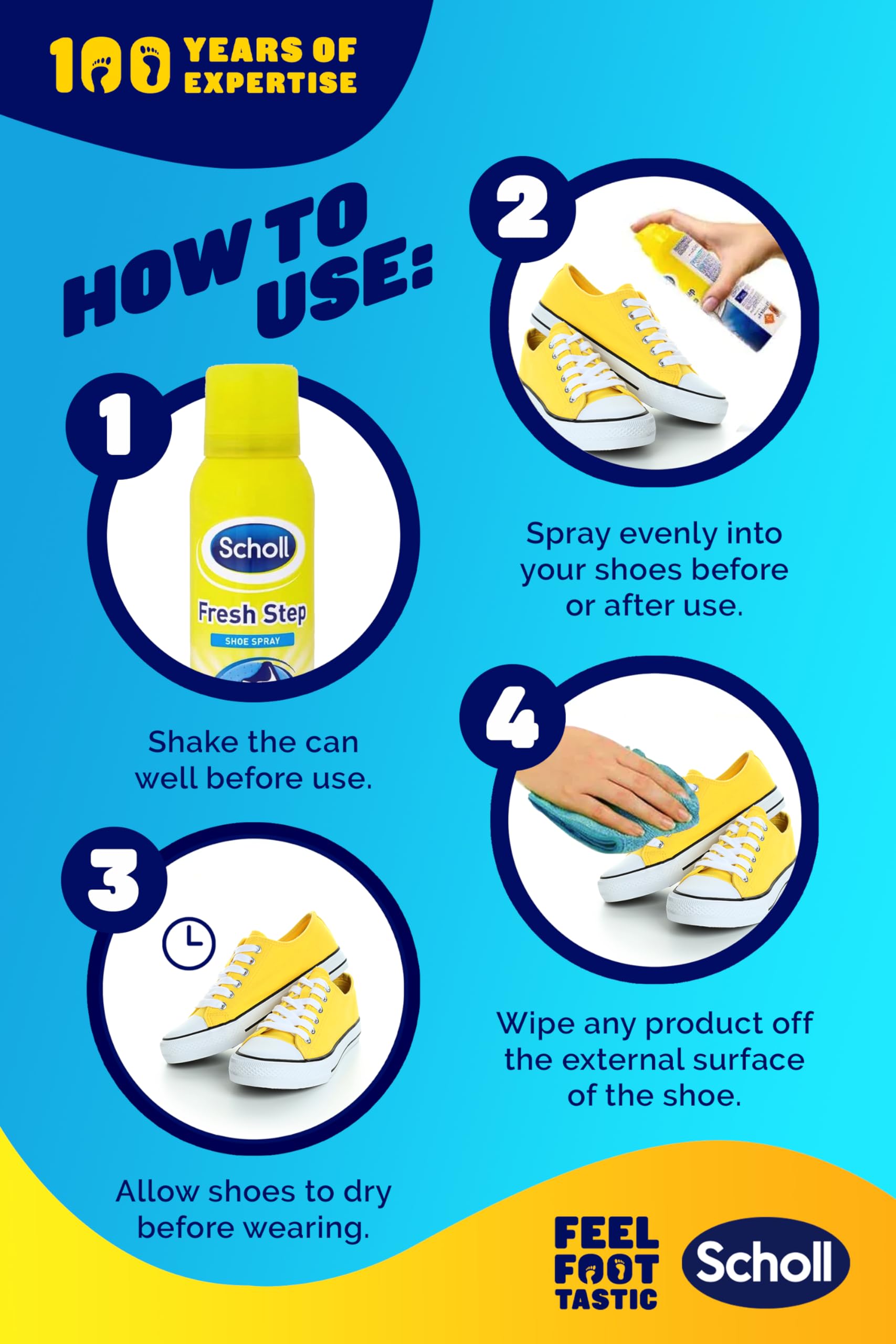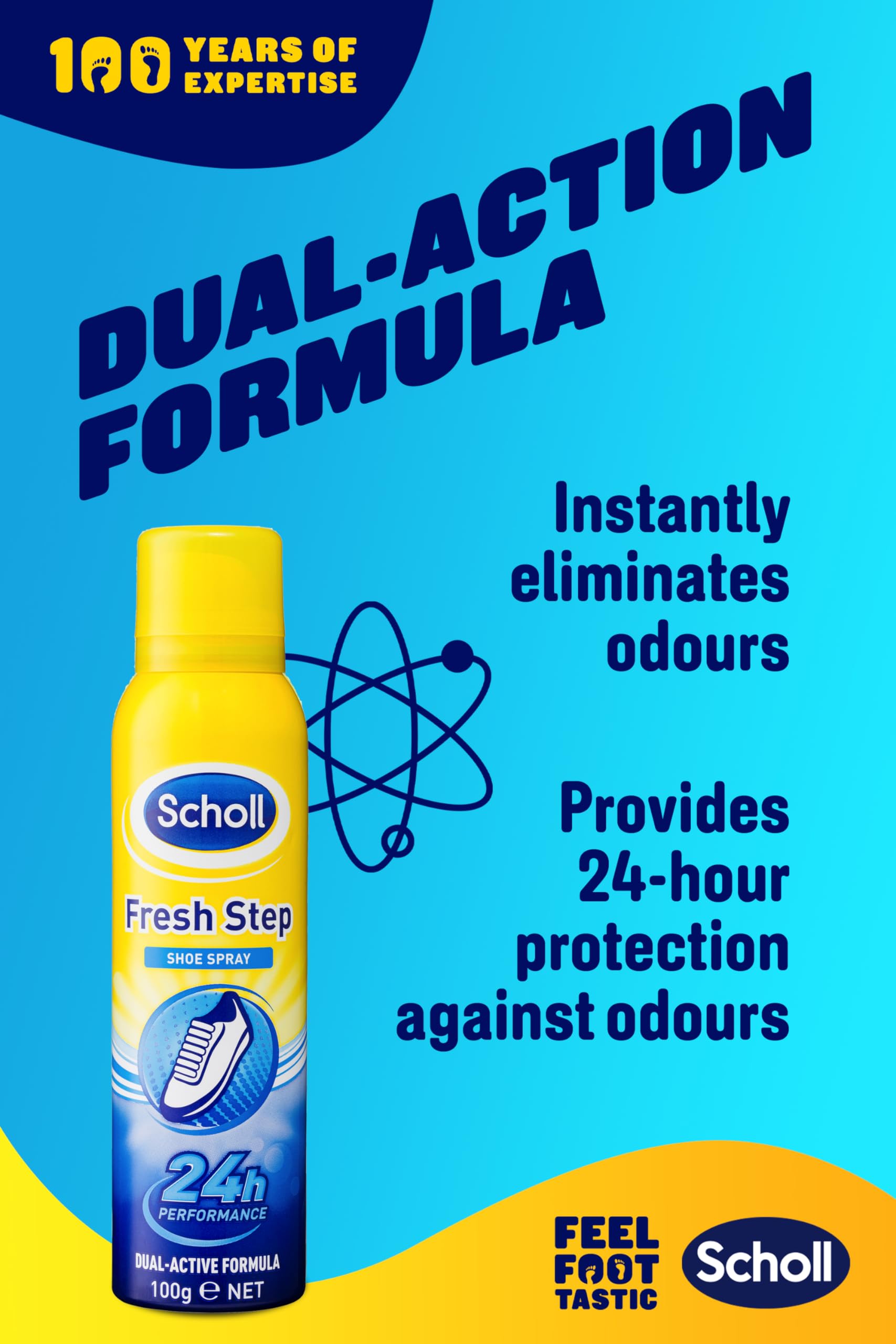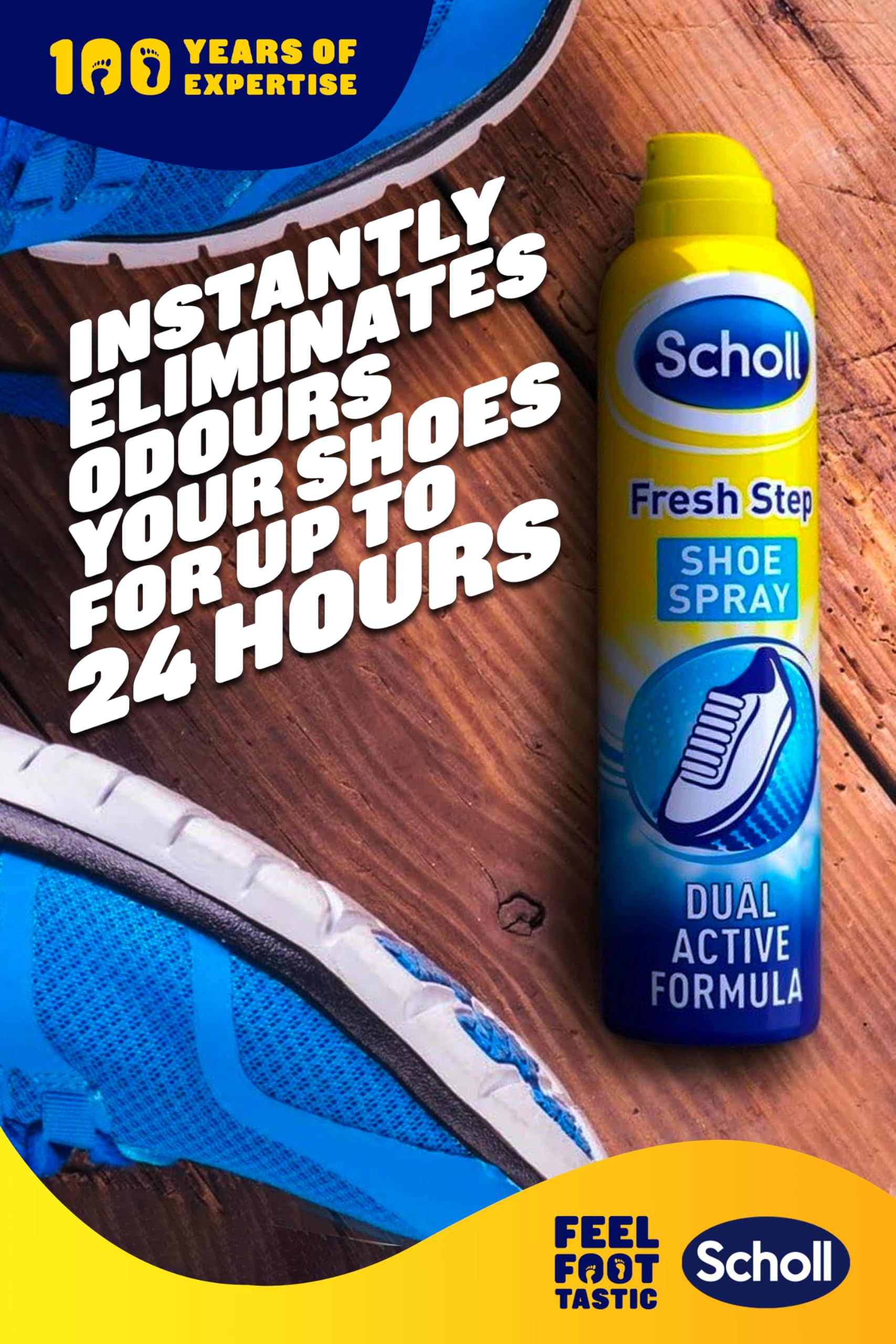 - INSTANTLY ELIMINATES ODOUR: Scholl’s Fresh Step Shoe Spray leaves your shoes smelling fresh, fragrant and airy. Our Dual-Action Formula beats the toughest of smells for your trainers, everyday boots or dancing shoes.