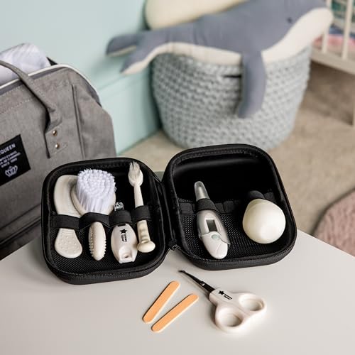 - 9 HEALTHCARE AND GROOMING ACCESSORIES – Enjoy peace of mind with nine essential baby care items which includes a digital thermometer, a nasal aspirator, baby nail scissors, baby nail clippers, emery boards, a baby toothbrush, and a baby hairbrush and comb set